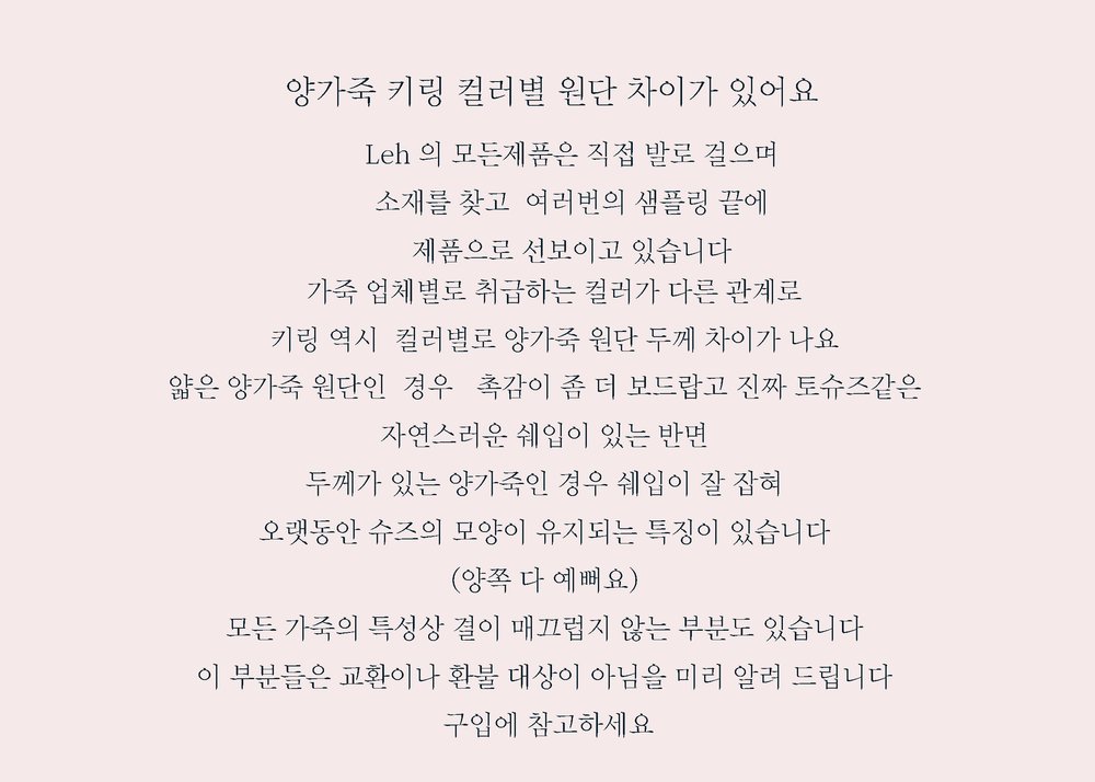 간혹 본드 자국이나 미세한 스크레치 혹은 가죽의 결이 매끄럽지 못한 부분이 있을 수 있습니다