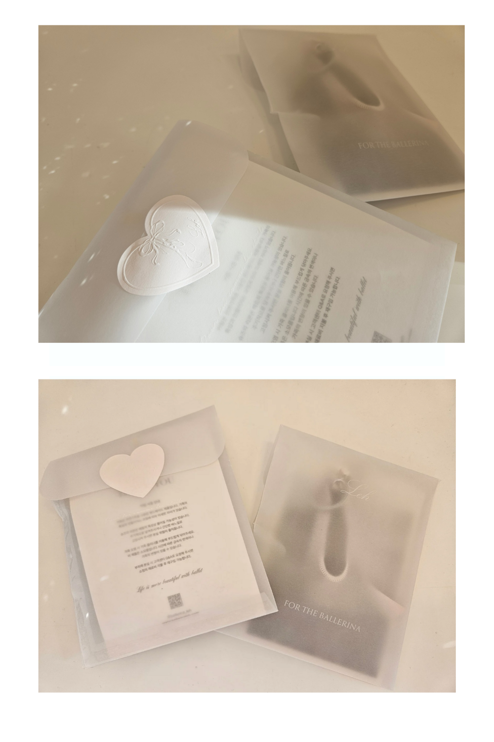 앞편은 발레리나 뒷면은 사용 안내가 인쇄된 300g 아이보리지에