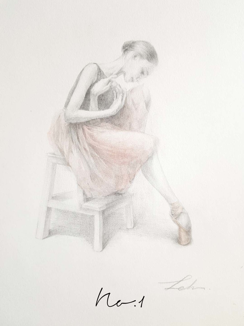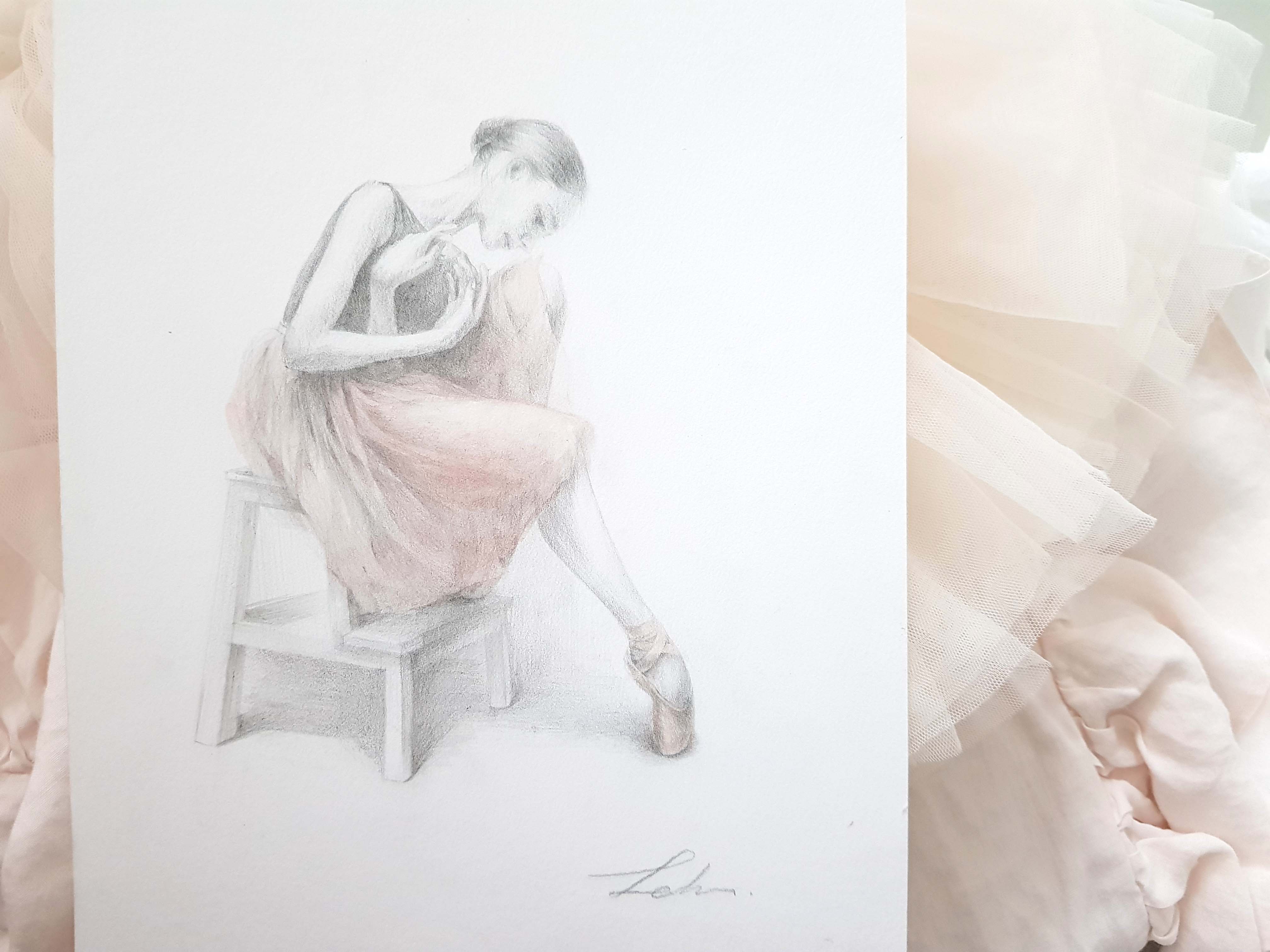 연필드로잉에 튜튜와 토슈즈만 채색이 된 그림이에요