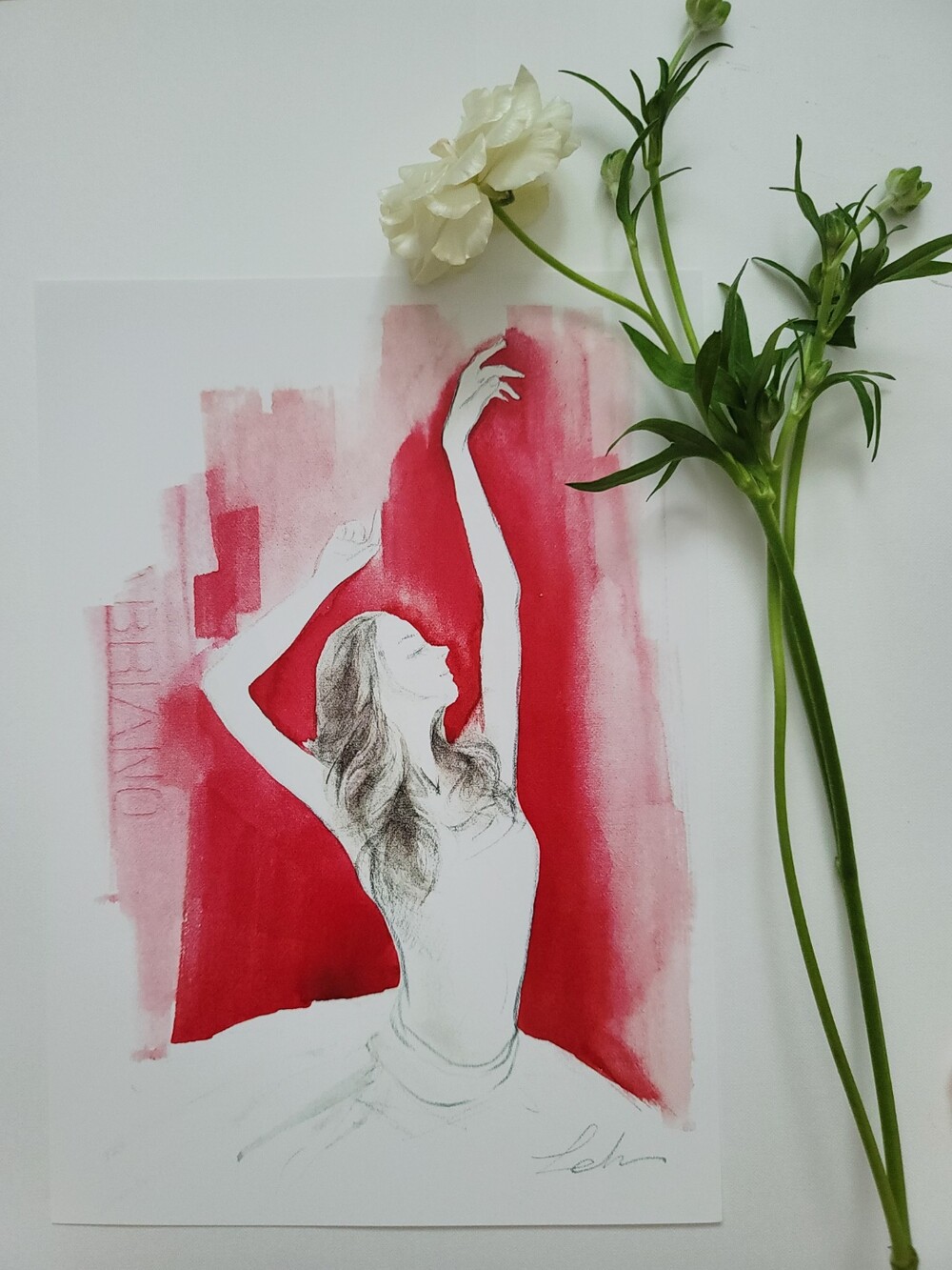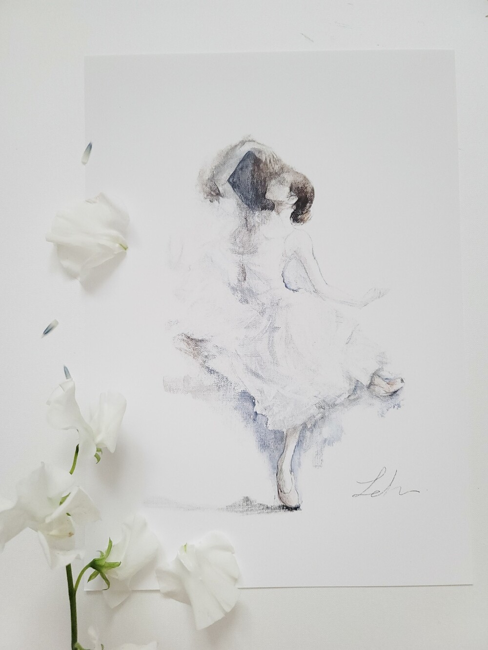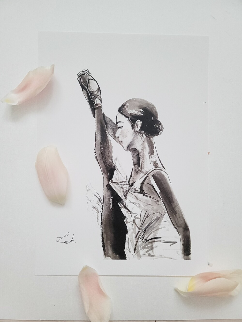 볼과 입술의 페일 핑크색이 인쇄작품엔 거의 표현되지않아 직접 인쇄그림위에 한장한장