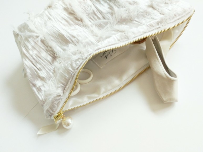 지퍼는 핵진주와 수입리본으로 마감되어있어요